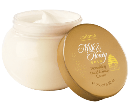 Crema Nutritiva para manos y cuerpo Milk & Honey, 250 ml, código 31602 – de textura muy ligera al tacto y de rápida absorción. Ideal para piel seca, y que contiene un aroma floral intenso al inicio sin ser penetrante porque cuando se aplica a la piel, el aroma baja a niveles suaves y la crema en sí engríe tu piel como nunca antes lo había hecho una crema. Me encantó que se absorbe rápidamente, y no me deja sensación alguna de humedad o grasitud sobre la piel, sólo una clara y visible mejora en el aspecto de la piel por la hidratación inmediata. De de alto rendimiento y no mancha la ropa.