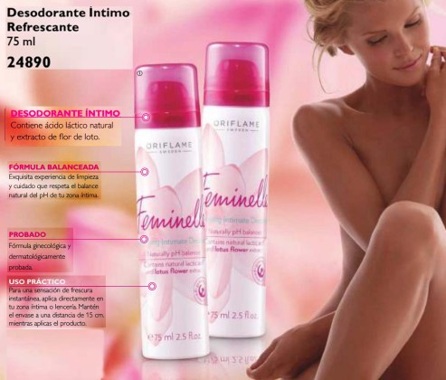 Antiguamente conocido como Intimate en el mundo Oriflame, y posteriormente mejorado y lanzado como Feminelle, por experiencia personal de años, puedo decir que su principal característica es brindar CONFIANZA E HIGIENE INTIMA A LA MUJER en cualquier momento del día.