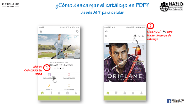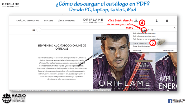 En ocasiones es práctico tener el catálogo grabado en nuestro celular o computador para compartirlo o revisarlo con más calma fuera de línea o sin conexión con Internet. Para ello, Oriflame nos brinda facilidades para descargarlo las veces que se quiera, siguiendo estos sencillos pasos.
