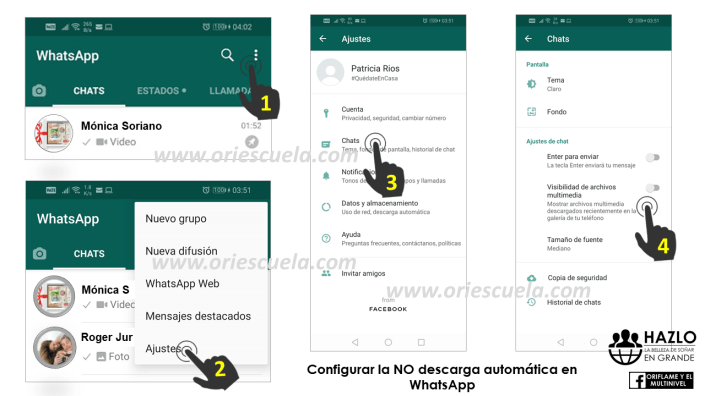 1. Configura tu WhatsApp para que NO descargue en automático:
