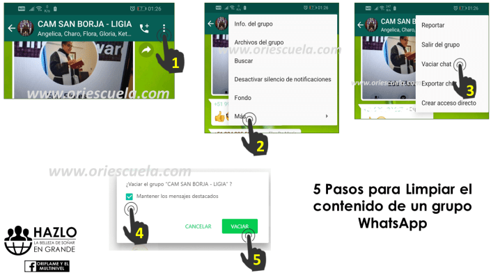 Esto solo funciona en tu equipo y NO toca el contenido que cada miembro del grupo esté guardando en su propio celular. Si usas este paso, no hay retroceso.