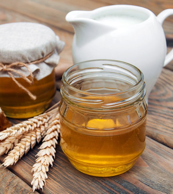 - Miel: Rica en vitaminas, minerales y ácido fólico. Hidrata, suaviza y revitaliza la piel mediante sus propiedades antioxidantes que protegen la piel y el cabello de las agresiones del medio ambiente y el sol.