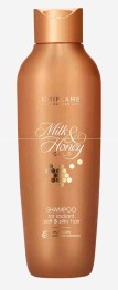 Shampoo para Cabello Radiante Milk & Honey Gold, de 250 ml, código 35957 – fórmula que deja su cabello suave e hidratado. Apto para todo tipo de cabello, y en especial para cabello seco, maltratado, teñido o que ha recibido fuertes exposiciones al sol, restaurando el brillo natural del cabello.