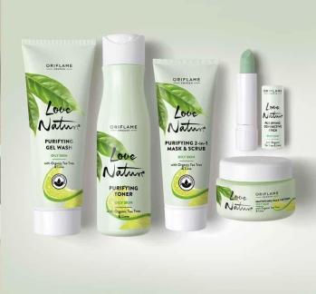 Love Nature de Oriflame está integrado por productos para el tratamiento facial (limpiadora, exfoliante, tónico e hidratante) de diferentes plantas para tratar diferentes problemas de piel en el rostro. Son no comedogénico, es decir no obstruyen los poros evitando así generar más imperfecciones.