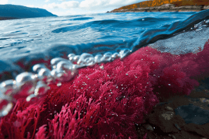 En el caso de las algas sometidas a estrés que pone en riesgo su vida, hace que se vuelvan rojas mientras dura su proceso de regeneración y cura.