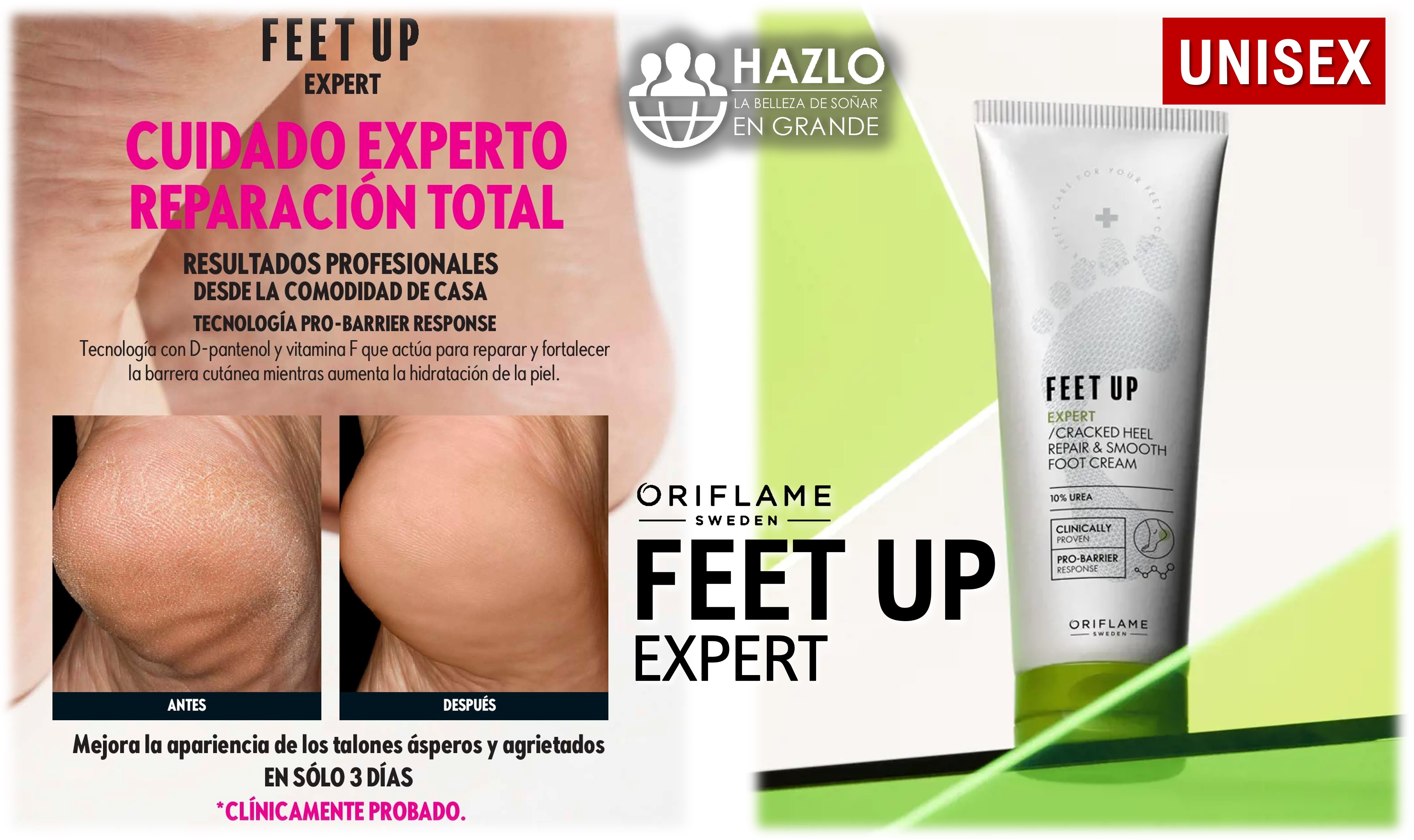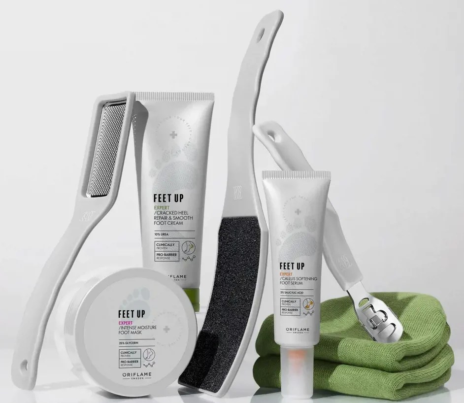 A veces los cuidados que damos a diario a nuestros pies quedan insuficientes o muy ligeros por problemas adicionales que puedan presentar. La piel puede lucir gruesa, blanquecina, amarillentos, seca, con callos o pelados, etc. ya sea por exposición al medio ambiente (por caminar descalzos muchas veces o usar frecuentemente sandalias sin medias en verano; sea en la ciudad, campo o playa por ejemplo), esfuerzo excesivo en caminatas o carreras, mal olor por sudoración excesiva, falta de aseo adecuado o problemas de salud, cansancio, callosidades, resequedad, y un largo etcétera, entonces tenemos para usar los productos de la líneaFEET UP EXPERTde Oriflame, cuya formulación UNISEX (para hombres y mujeres), además de ingredientes vegetales específicos, contiene nuevas tecnologías quehan reformulado y potenciado los productos de nuestra línea Feet Up Advanced anterior y ya descontinuada, con nuevos ingredientes que nos dan mejores resultados. 🙂