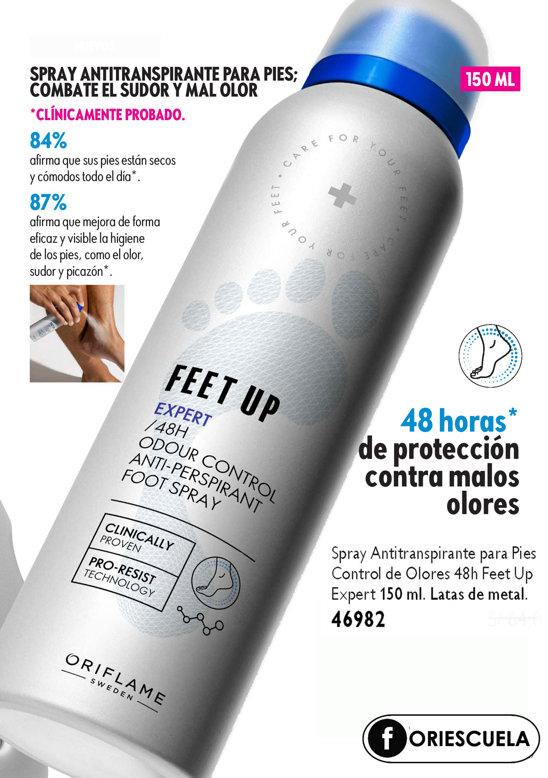Spray Antitranspirante para Pies, Control de Olores 48 horas,frasco de lata, spray de 150 ml, código 46982, producto estrella de la línea. Nuevo desde C1-2026.