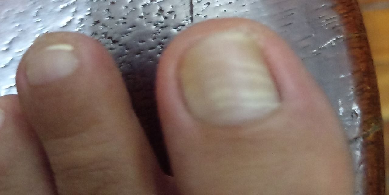 En el año 2017, creí tener un problema de hongos en las uñas de los pies, se me habían puesto blancas por partes, como con rayas blancas al principio y luego se extendió cubriendo media uña pero en vertical y solo las uñas de los pulgares, sin dolor, ni olor, ni nada más.